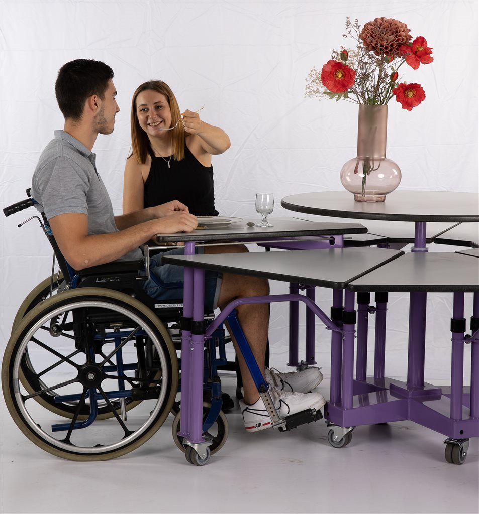 Parfaite pour les repas partagés et les activités en groupe, cette table se distingue par sa conception inclusive et fonctionnelle.