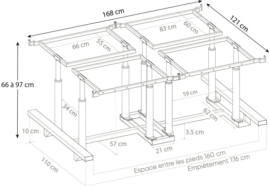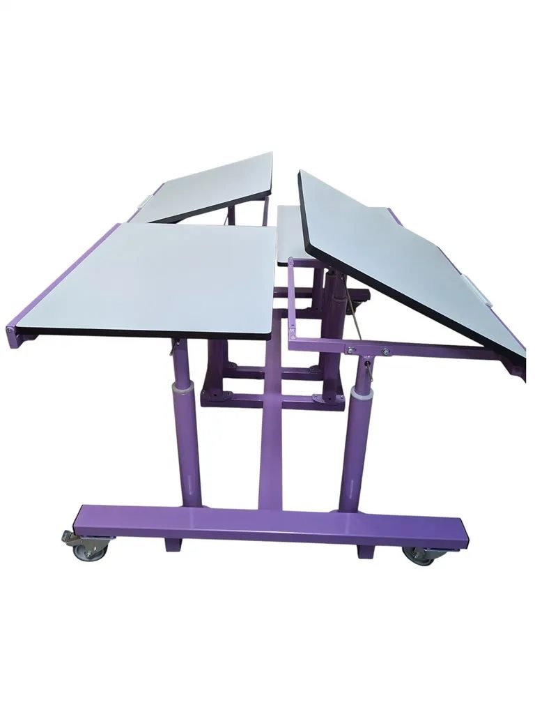 La table ATHÉNA 4 est composée d'une grande surface divisée en 4 plateaux au réglage individuel. Vous pouvez la façonner à votre façon avec ses options de plateaux inclinables, magnétiques et accoudoirs.
