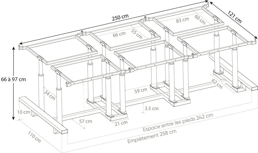 - Passage entre les pieds 160cm