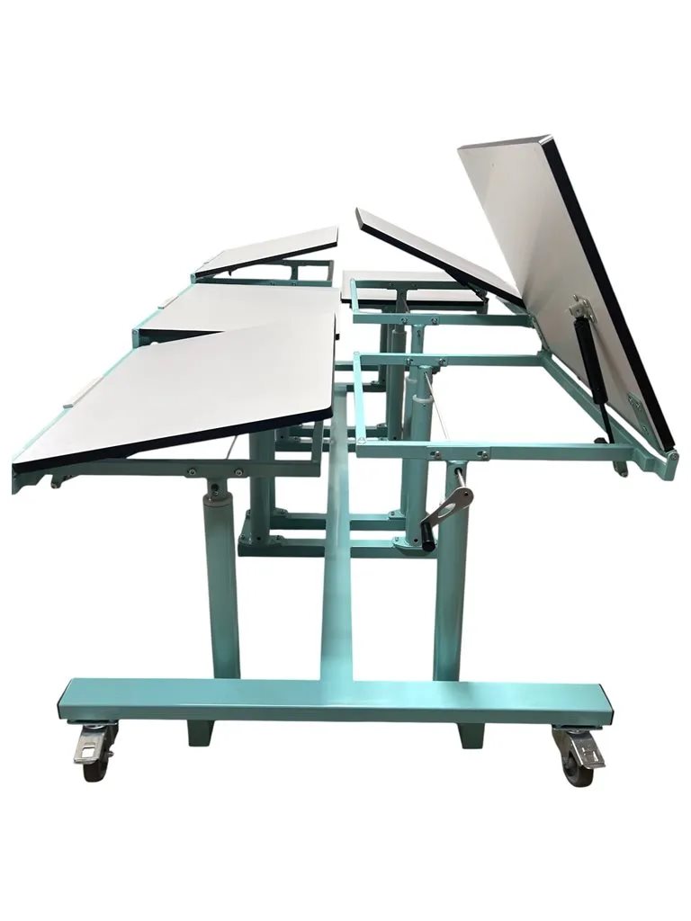 La table ATHÉNA 6 est composée d'une grande surface divisée en 6 plateaux au réglage individuel. Vous pouvez la façonner à votre façon avec ses options de plateaux inclinables, magnétiques et accoudoirs.
